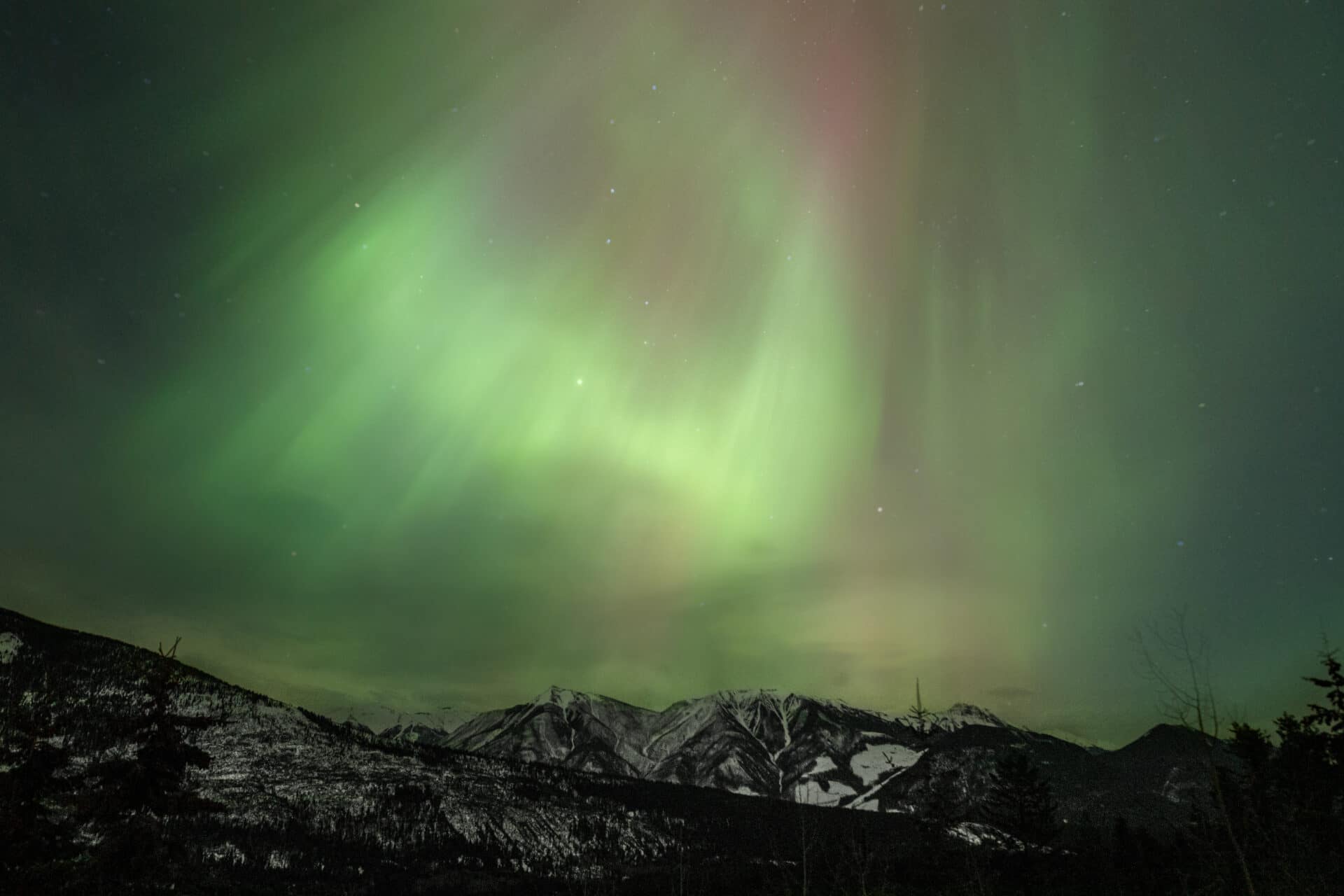 The Aurora Borealis over Mitchell Ridge in Kootenay National Park, British Columbia, Canada
