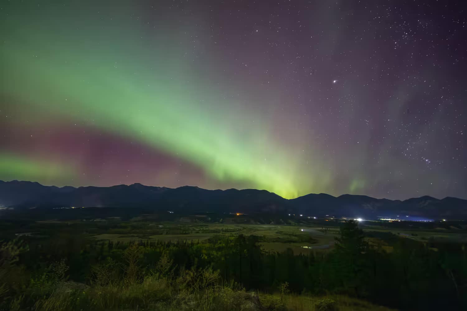 The Columbia Wetlands and the Aurora Borealis near Wilmer, BC.