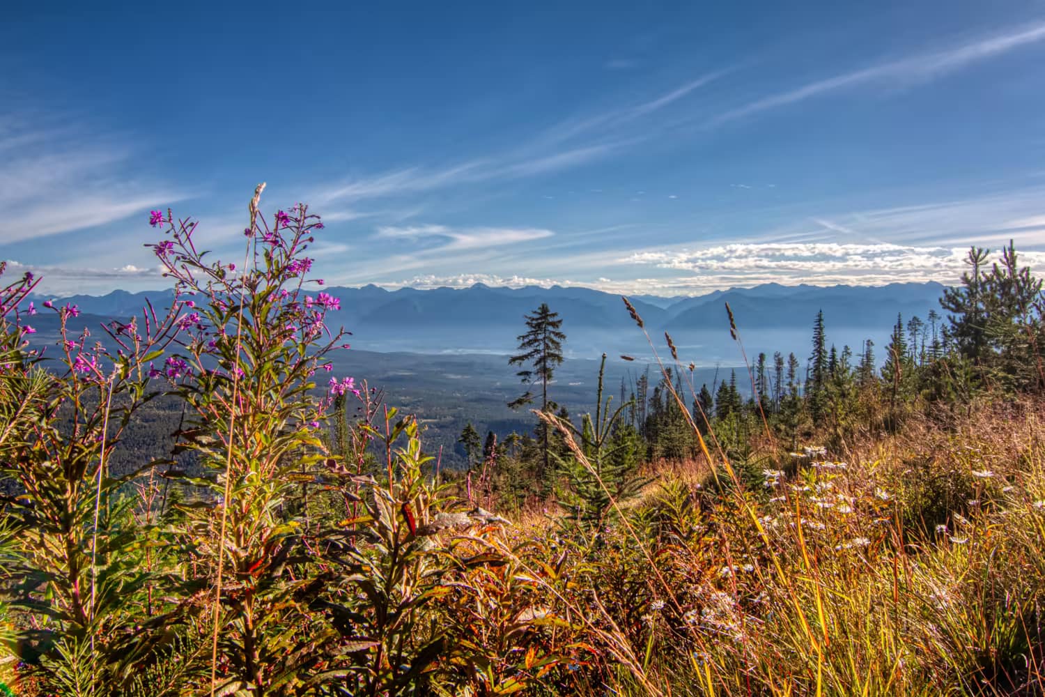 Summer wildflowers on the slopes of Mt. Bruce, overlooking the Columbia Valley and the Canadian Rockies beyond.